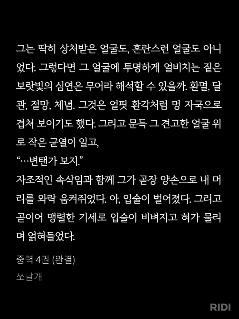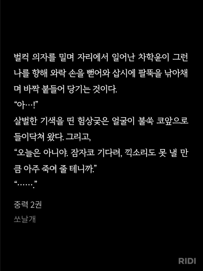 걍 니가 좀 더 다가와. 나는 가족때문에 너에게 다가갈 수 없잖아 하는 심리가 읽히니까 중력의 모든 외전이 다 재밌었다.